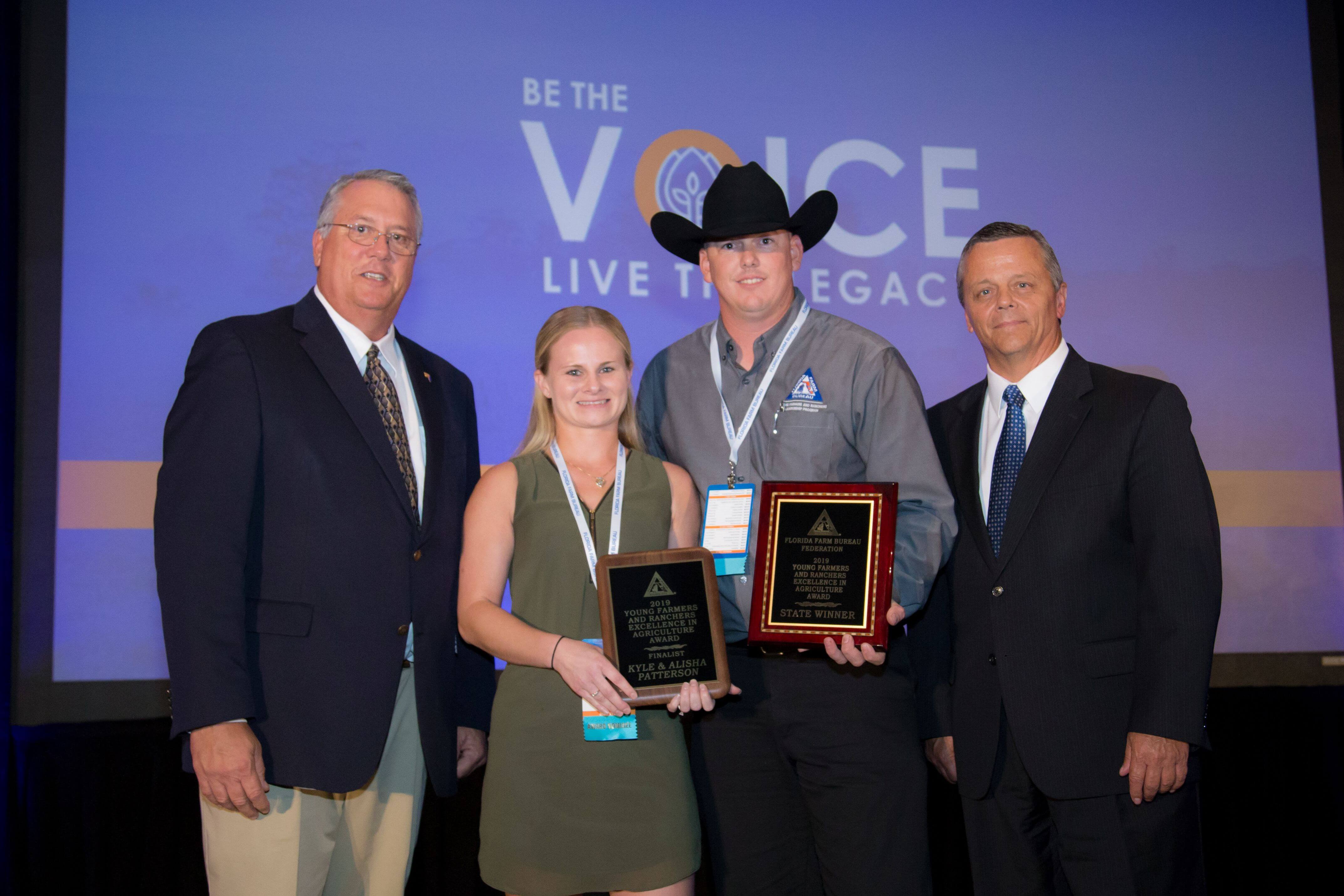 The 78th Annual Meeting took place at the Caribe Royale in Orlando Oct. 30-Nov. 1 recognized many volunteers for their outstanding achievements. Young Farmers and Ranchers Jake and Tiffany Sache of Levy County won the Achievement in Agriculture Award, while Kyle and Alisha Patterson of St. Lucie County received the Excellence in Agriculture Award and Pete Dola of Levy County placed first in the Discussion Meet. The young farmers will advance to the national competitions in Austin, Texas at the American Farm Bureau Annual Meeting Jan. 17-22, 2020.